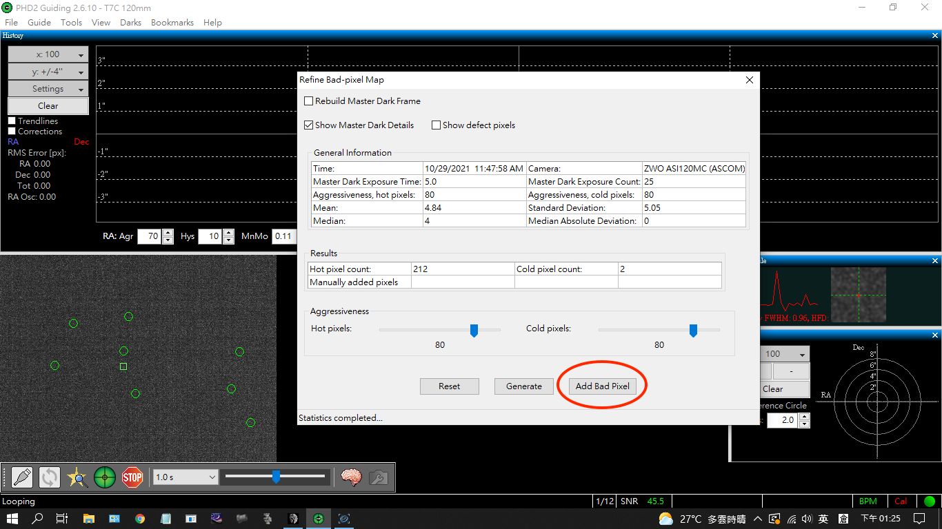 - 再做一次 Bad-Pixel Map ,還是失敗,這大概是選了 Rebuild Master Dark Frame 的關係: