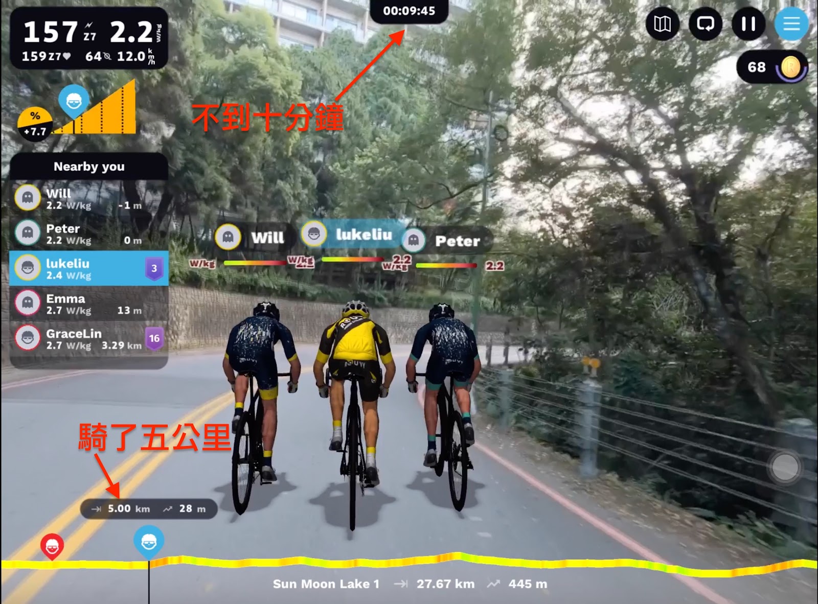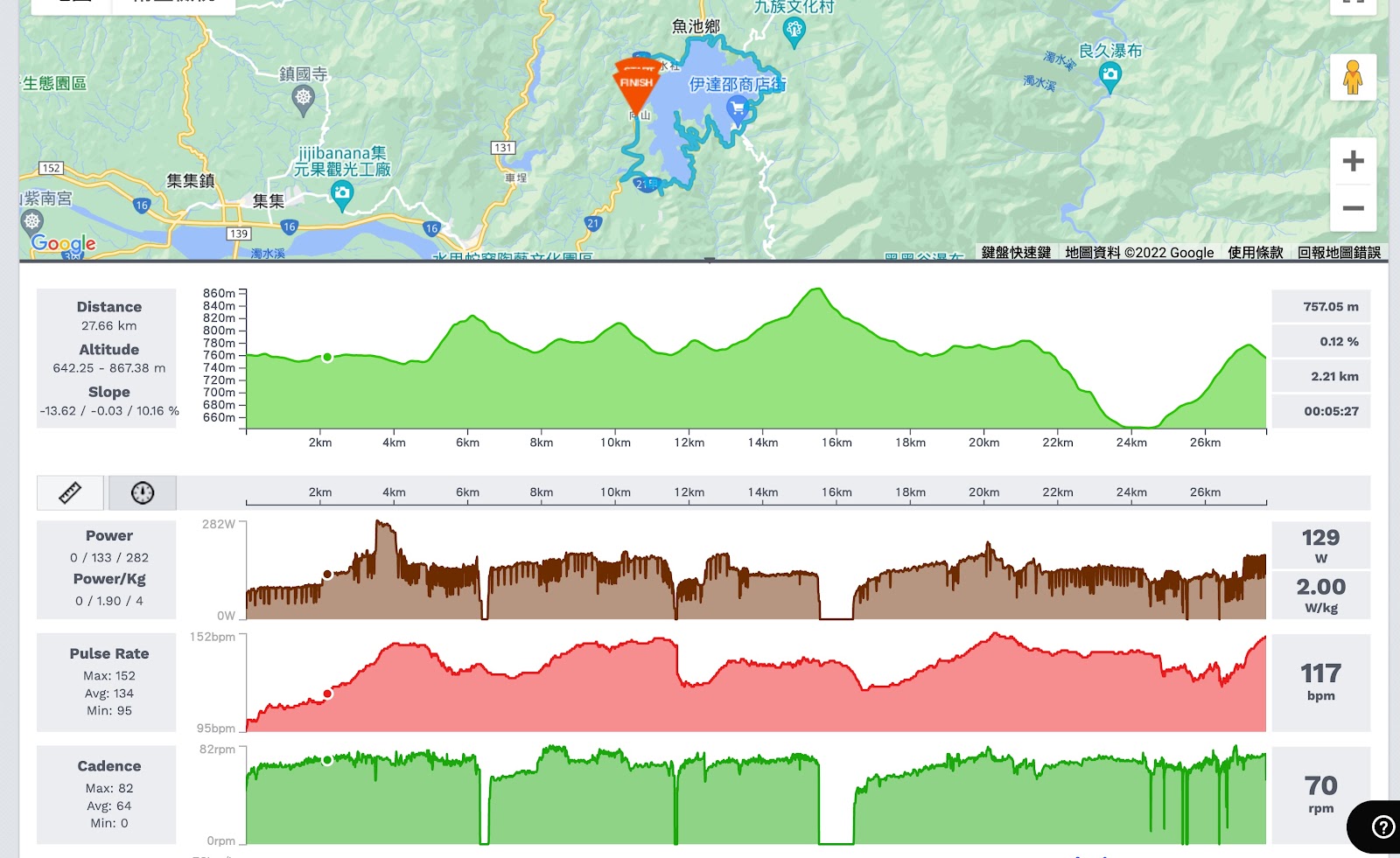 全部過程含 15 分鐘的 WarmUp 、 CoolDown 及約 24 分鐘的騎乘